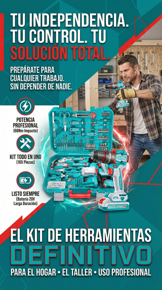 TALADRO INALAMBRICO 1/2 20V 66NM + BATERIA 20V + KIT DE HERRAMIENTAS 165 PZS TOTAL